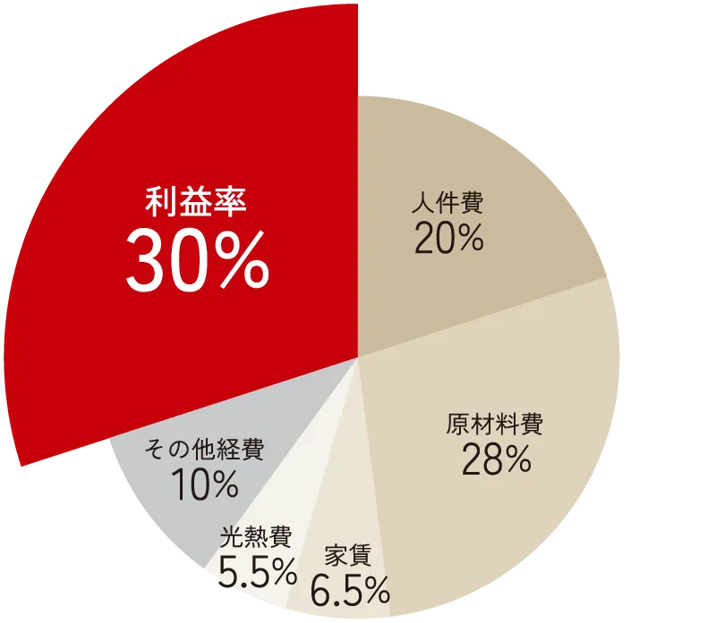 原価率を抑えた食材構成と少人数運営による人件費圧縮、ロスの少ない販売オペレーション。飲食店の平均営業利益率8.6%※に対し、YOGIは驚異の30%超を実現しています。 ※経済産業省「商工業実態基本調査」(平成10年より)